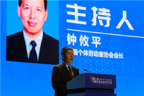 (中國(guó)個(gè)體勞動(dòng)者協(xié)會(huì)會(huì)長(zhǎng)鐘攸平主持大會(huì))