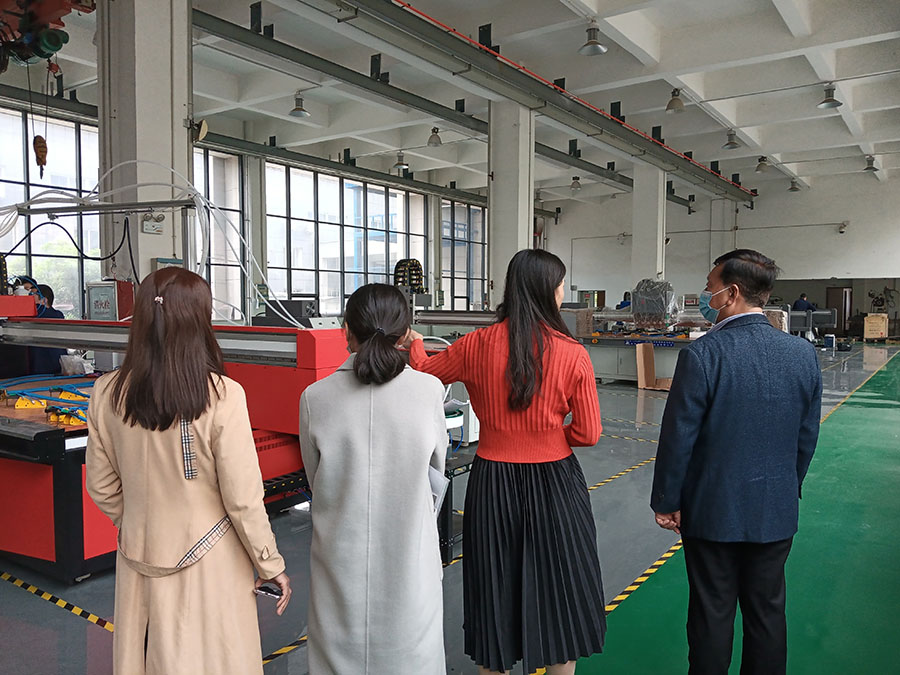 日出江花紅勝火,春來江水綠如藍(lán)。2021年4月13日,洛陽市高新區(qū)人大領(lǐng)導(dǎo)一行人來我廠考察指導(dǎo)工作,重點參觀了我司的鈑金自動化設(shè)備:涂膠設(shè)備、工業(yè)平板噴墨打印設(shè)備、焊接自動化設(shè)備、工業(yè)機器人等,對我司的產(chǎn)品給予了肯定。詳細(xì)了解了數(shù)控自動化設(shè)備的的應(yīng)用領(lǐng)域和新產(chǎn)品的研發(fā)工作,給予了充分地肯定與認(rèn)可。