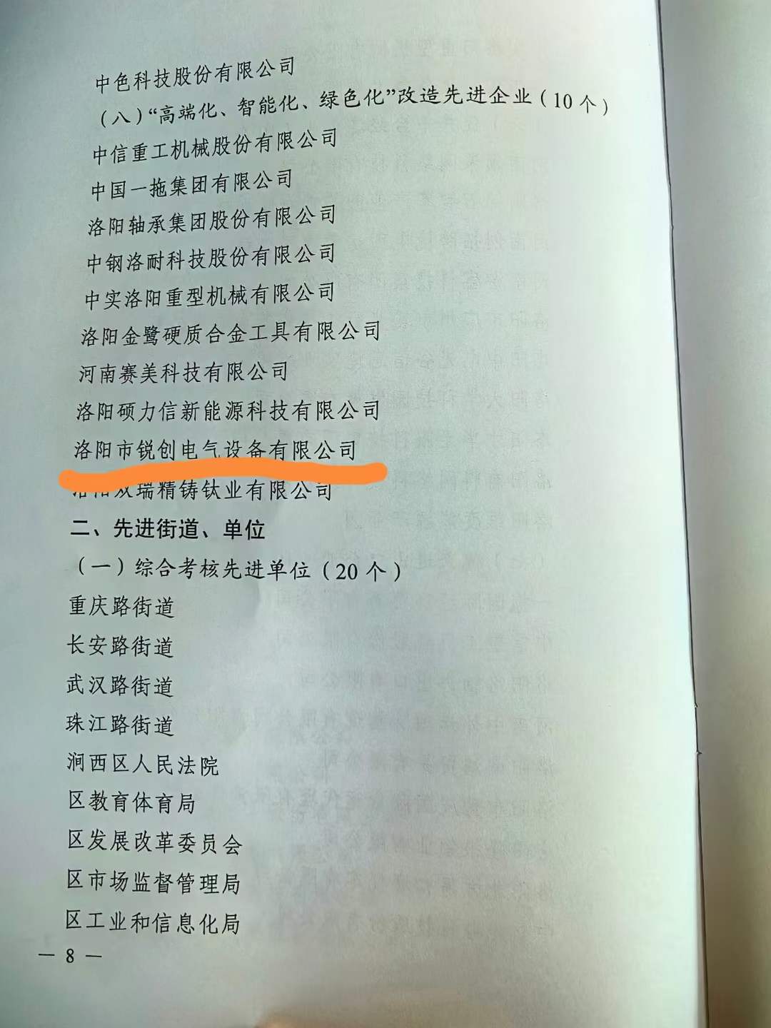 洛陽銳創(chuàng)榮獲2023年度“高端化、智能化、綠色化”改造先進(jìn)企業(yè)等稱號(hào)